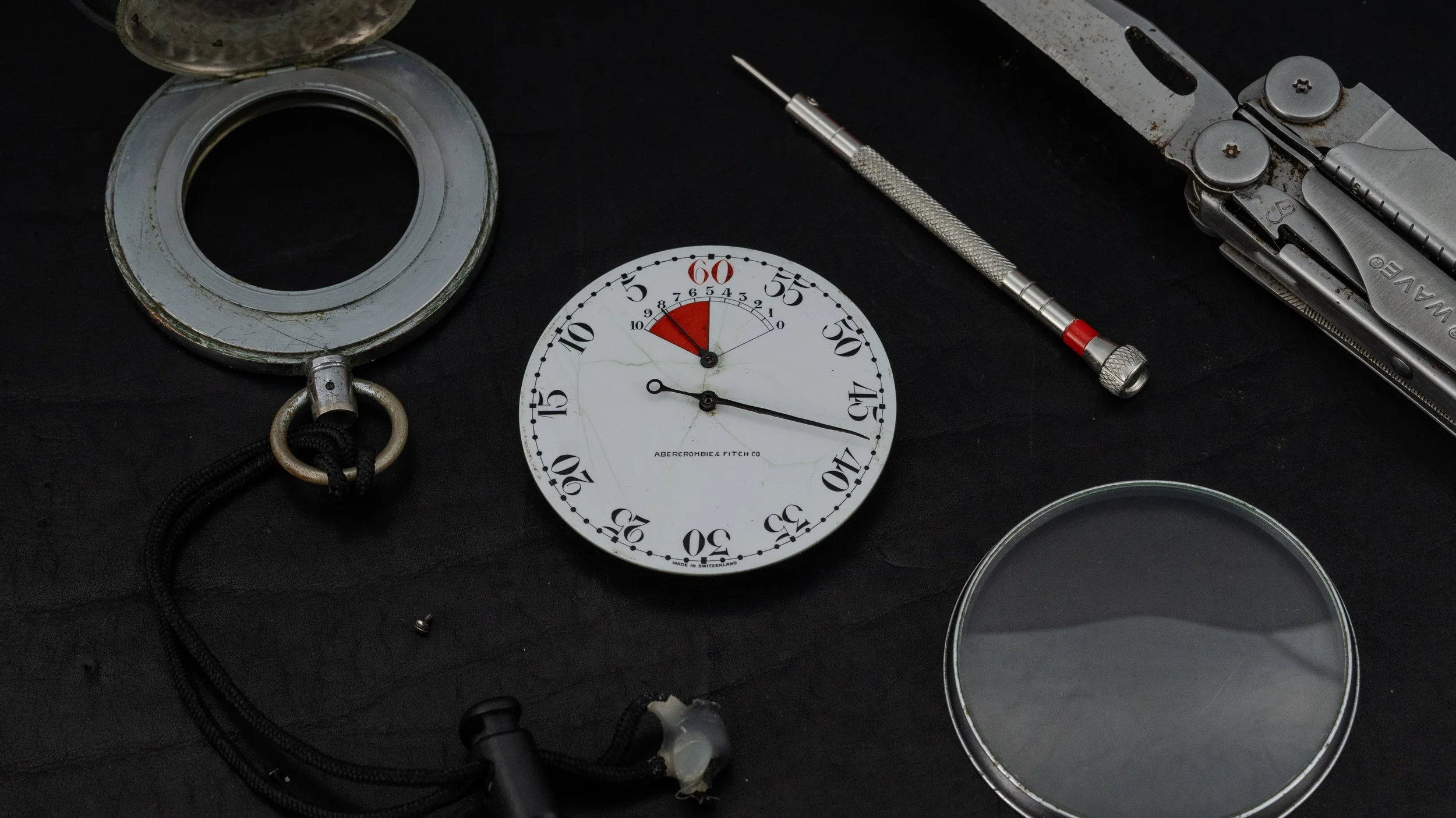 I choose to believe that this is a Heuer-produced regatta timer caliber made for Abercrombie & Fitch Co. during the heyday of the outdoor retailer. Not only does the timeline add up, but it seems unlikely that the retailer would partner up with multiple Swiss watchmakers at the same time to produce the same product. Further, as far as I can find, there is no record of any other watchmaking partnership for the brand. Now, you won't find this broken stopwatch back up on eBay touting newly discovered origins for double the price. No, it will stay in my collection and be used as a conversation starter and photo prop. That gives me an excuse to keep it on my desk, allowing me to run my fingers over the varying gouges and daydream of old sailing yachts while “listening” to my Zoom meeting.